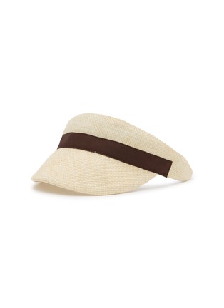 Jennifer Ouellette captures timeless summer elegance with this structured visor, featuring woven textured detailing and a contrast grosgrain band. The curved wide brim provides stylish sun protection, while the open-crown design ensures breezy comfort and effortless sophistication for warm-weather wardrobes.