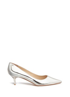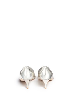 Jimmy Choo的鞋履是集华丽与舒适于一身的典范,这款经典的Aza鞋款配备了中跟设计,让您在尽情展示优雅魅力的同时舒适自在,金属感银色真皮鞋面极具华丽感,不论出席宴会还是日常穿着都异常搭调。
