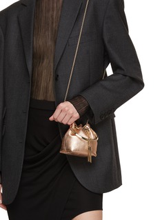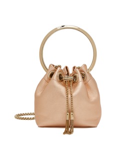 Jimmy Choo 的 BON BON 系列水桶包以金属纳帕皮散发耀眼魅力,光泽金属提环和链条抽绳突显精美包型,为不同场合装束增光添彩。