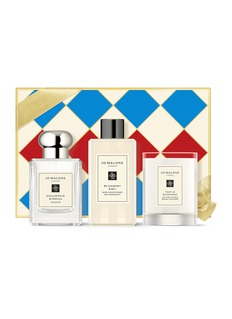 A hat-trick of winning scents. Contains three popular fragrances to treat yourself or someone else. Includes Blackberry & Bay Body & Hand Wash, English Pear & Freesia Cologne and a Peony & Blush Suede Travel Candle to enliven your home.