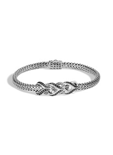 John Hardy 这款手链采用纯银打造出颇具现代化的编织链条,赋予单品冷峻硬朗气息。黑色蓝宝石与尖晶石则为单品注入奢华格调,瞬间升级你的摩登时尚造型。