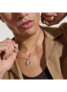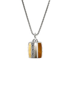 Introducing the Carved Chain collection, John Hardy translates the rhythmic action of weaving into graphic two-dimensional textures through a hand-carved motif. The piece showcases a square pendant, inlaid with tiger's eye, pyrite and pearl to flaunt an artisanal allure.