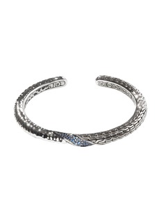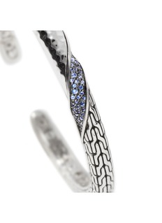 As part of the revered Classic Chain Collection, this bracelet is a masterful showcase of Balinese artistry. It features the iconic Classic Chain pattern on one half and a skillfully hand-hammered finish on the other. Bridging these two distinct textures, a band of hand-set pavé sapphires adds an understated sparkle to the piece.