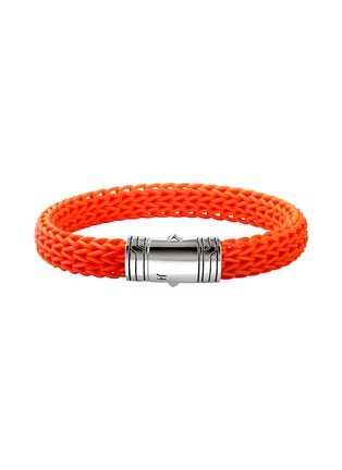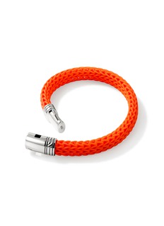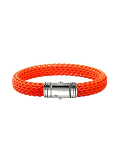 John Hardy pays homage to the complex human relationships with the Icon collection, as showcased in this bracelet. Signifying the bonding with a woven chain, this piece is adorned with a sterling silver clasp that shines against a rubber construction for an elegant yet versatile appeal.