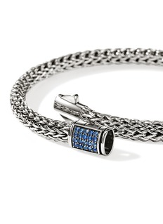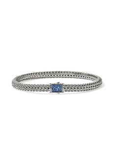 Intricately handwoven in sterling silver, this bracelet by John Hardy is finished with a clasp illuminated by brilliant blue sapphires. The extra-slim silhouette offers versatility—wear it stacked for a layered statement or alone for a subtle pop of modern elegance.