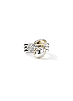 Inspired by the organic shapes that capture life's serendipitous beauty, this ring showcases Balinese craftsmanship through their fluid lines and smooth, pebble-like finish. The polished 14K gold and sterling silver base is elegantly offset by pavé diamonds, echoing the collection's tribute to natural spontaneity.
