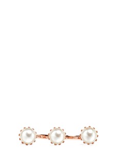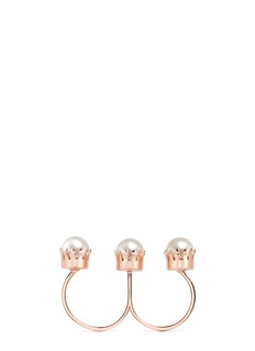 Joomi Lim这款戒指属于品牌的Lady Rebel系列,玫瑰金色戒指圈与圆润的白色施华洛世奇人造珍珠结合,配以独特别致的双圈开口设计,散发高贵浪漫气息同时透出酷感魅力。