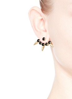 Joomi Lim透过弧形吊饰、施华洛世奇仿水晶及尖钉点缀打造出这款LOVE THORN垂坠耳环,设计简约而不失个性,不妨搭配全黑造型,突显摩登前卫的个性格调。