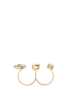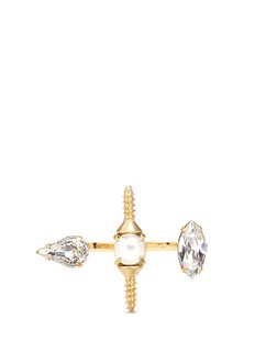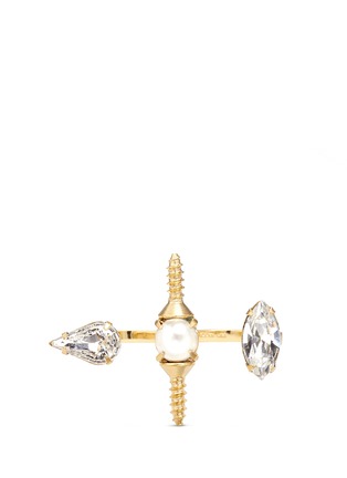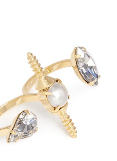 Joomi Lim新季此款戒指以“Screw U”为主题,设计师别出心裁地以螺丝钉呼应主题,此款金色双圈戒指选用标志性的施华洛世奇仿水晶及人造珍珠制作,人造珍珠两端拼接精致的螺丝钉装饰,洋溢满满玩味。