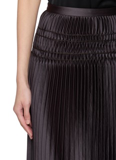 JOSEPH 以精确细节、奢华面料及裁缝技术,打造出一系列现代经典新品。这款半裙甄选丝缎裁就,褶裥纹理随步伐轻舞,优雅与率性并存。