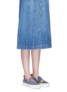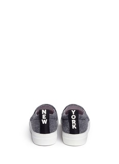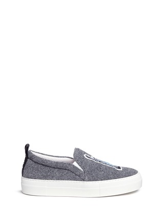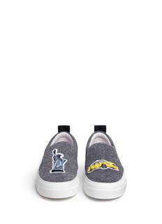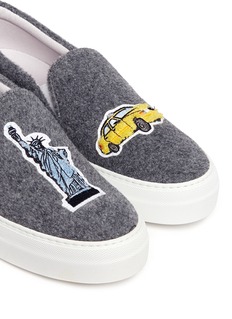 Joshua Sanders将意式工艺结合纽约街头潮流文化,以玩味设计为时尚界带来朝气。这款厚底便鞋左右脚分别将黄色汽车和蓝色自由女神像毛圈徽章拼贴于灰色毛毡鞋面上,充满特色个性,尽显您随性时尚的风格。