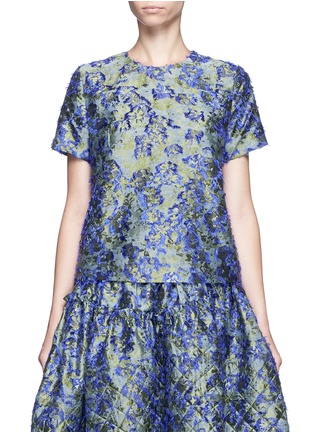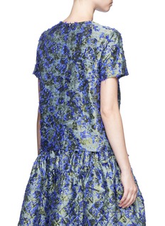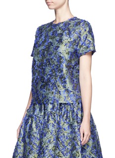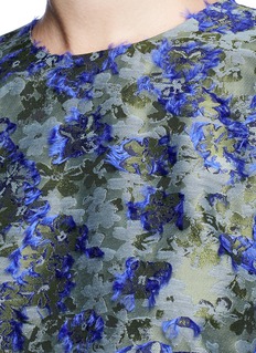 JOURDEN这款上衣采用富光泽感的面料制成,手感细滑柔软,表面缀有细致的花卉图案,并以紫蓝色提花及毛饰勾边,令花卉的廓形更为鲜明,同时增强了触感变化,配以鲜艳色彩,彰显您清新优雅一面。