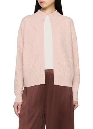 Softened through a warm blush tone, this bomber cardigan by Jovens elevates everyday knitwear with refined fancy stitching and a clean, collarless profile. The relaxed silhouette drapes gently over fluid trousers or tonal layers, offering an effortless balance of structure and softness.