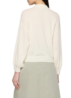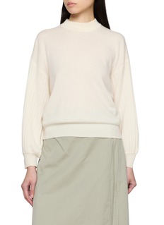 Soft volume meets quiet structure in this Jovens knit, shaped with an oversized silhouette and gently puffed balloon sleeves. Finished with a refined mock neckline and ribbed detailing, it balances warmth and lightness—ideal with fluid skirts or tailored trousers.