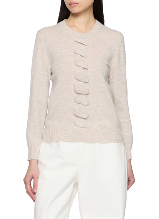 Quietly expressive, this Jovens sweater reimagines a classic knit with an artful front tab detail that runs asymmetrically down the bodice. Softly structured with a round neckline, it pairs effortlessly with tailored trousers or denim for refined everyday elegance.