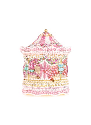 Enter a world of whimsical elegance with the Pink Ponies Carousel crystal clutch. Perfect for adding a bold statement in a soft palette, blending playful allure with sophisticated design. Pair it with a gown or sun dress and elevate your wardrobe with a fairytale-inspired feel.