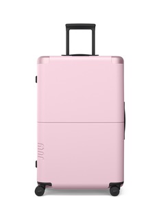 The Checked Plus suitcase by July is the perfect travel companion for the stylish and savvy globetrotter. Crafted from high-quality materials, including aerospace-grade German polycarbonate, this suitcase boasts a unique curved eggshell design that maximizes packing space. The SilentMove 360° spinner wheels make manoeuvring through busy airports and uneven terrain effortless, while the extra-large size maximises packing space.