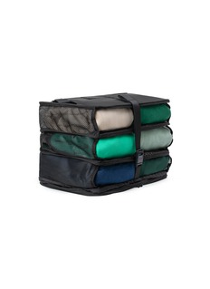 The perfect packing solution that everyone needs to know. The Compression Packing Shelves from July features three open shelves and a zipped solid fabric pocket to keep your clothes tidy and super easy to find, so you can focus on the parts of travel that you actually enjoy.