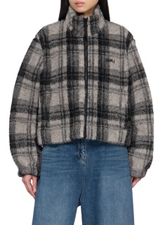 Juun.J 受到青年和街头文化的启发,以新式街头美学冲击传统剪裁。这款夹克采用经典格纹图案,展现英伦学院风魅力,高领设计增添保暖功能。拉链开合便于日常穿脱,毛绒质感营造温暖触感。可搭配牛仔裙和运动鞋,演绎现代休闲学院风格。