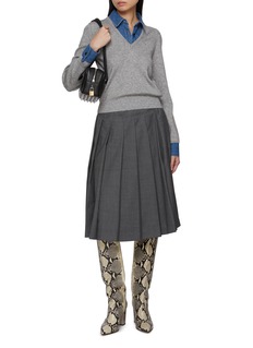 Juun.J 受到青年和街头文化的启发,以新式街头美学冲击传统剪裁。这款上衣精选针织面料拼接衬衫细节,V 领线条和袖口比例巧妙融合,轻松展现叠搭时尚。