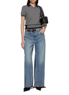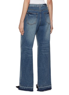 Juun.J 受到青年和街头文化的启发,以新式街头美学冲击传统剪裁。这款牛仔裤前后以非对称长度拼接,巧妙融入质感与线条的过渡,搭配简单 T 恤或尖头鞋,轻松点亮你的日常单品。