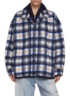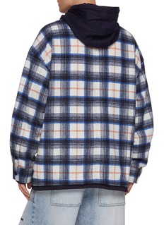 Juun.J 受到青年和街头文化的启发,以新式街头美学冲击传统剪裁。这款夹克以连帽版型融入格纹衬衫,两件式结构结合宽松廓形,营造出层次丰富的率性造型。