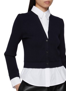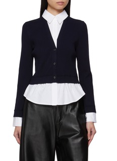Juun.J 受到青年和街头文化的启发,以新式街头美学冲击传统剪裁。这款上衣精选针织面料拼接衬衫细节,V 领线条和褶皱细节巧妙融合,轻松展现叠搭时尚。