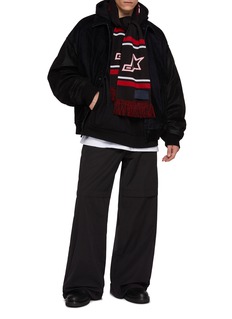 Juun.J 受到青年和街头文化的启发,以新式街头美学冲击传统剪裁。这款长裤以挺括面料勾勒率性阔腿版型,膝盖处褶皱更添立体感与视觉张力。