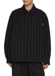 Juun.J 受到青年和街头文化的启发,以新式街头美学冲击传统剪裁。这款夹克精选挺括条纹面料裁就,拉链和下摆扣带细节融入日常精致格调。
