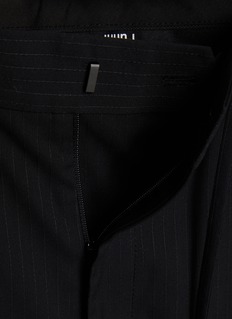 Fine pinstripes lend a tailored cadence to Juun.J’s subversive menswear codes. Cut in a wide, fluid silhouette, these wool pants balance sartorial polish with ease, styled effortlessly with sharp shirting or softened by relaxed knits for day-to-night dressing.