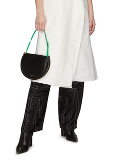 JW Anderson 擅长运用天马行空的想象力打造出独特的轮廓。这款单肩包凭借质感细腻的真皮打造出立体的半月廓形,简约大气,绿色的可调节肩带设计带来活力变奏之余更添实用性,轻松搭配你的都市女郎造型。