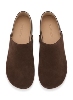 These J.W. Anderson mules blend timeless elegance with modern minimalism, featuring a luxurious chocolate suede upper and a sleek, contrasting black leather heel. The effortless slip-on design ensures ease of wear, while the clean lines and smooth silhouette provide a sophisticated aesthetic.
