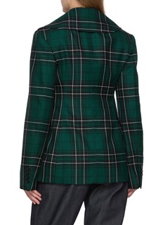 The JW Anderson blazer redefines classic tailoring with its bold plaid pattern and nipped-in silhouette. This statement piece effortlessly blends tradition with modern edge, offering a polished yet daring look.