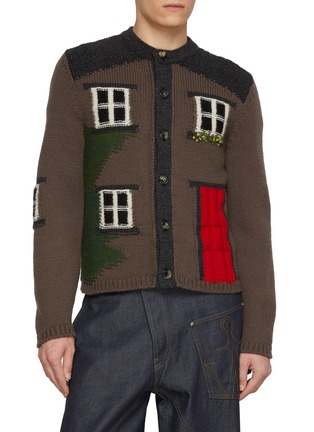 This J.W. Anderson cardigan presents a captivating narrative through its whimsical and detailed knit design, featuring charming house motifs that bring a playful and artistic edge to traditional knitwear. The earthy brown base is complemented by intricate, colorful details such as green shrubbery and a vivid red door, making each element pop. Constructed from premium, soft wool, this cardigan offers both warmth and comfort, ideal for layering in cooler weather. Its classic button-front design ensures versatility and ease of wear.