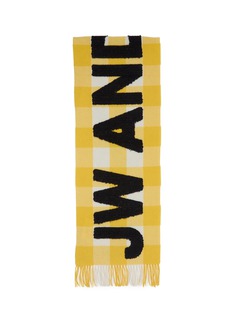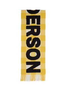 Add a bold statement to your winter accessories with this J.W. Anderson scarf. The striking yellow and black checkerboard pattern is punctuated by an oversized, abstract brand inscription, adding an artistic flair to this cozy piece. Made from plush wool, it ensures warmth and comfort while making a fashionable impact. Perfect for those who appreciate standout pieces with a touch of playful sophistication.