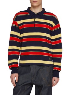Anchored in collegiate nostalgia with a polished twist, this striped rugby polo sweater by JW Anderson balances matte cotton with lustrous viscose for visual depth. A relaxed essential for layered city dressing, it pairs effortlessly with denim or tailored trousers.