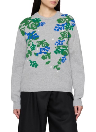 Drawing from heritage codes, this crewneck sweater by JW Anderson reimagines Pringle’s archival florals through modern intarsia. Knitted in Scotland, the grey melange base softens the graphic motif, making it an easy statement layered over tailoring or denim.