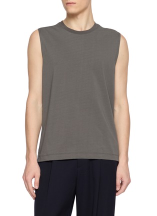 Innovative texture meets artisan craftsmanship in this tank top, where custom-knit precision and strongly twisted yarns create a unique, tactile surface. The dry, slinky touch of the fabric redefines luxury basics, blending unprecedented materiality with effortless, modern style.