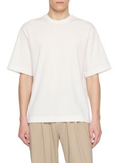 Innovative texture meets artisan craftsmanship in this T-shirt, where custom-knit precision and strongly twisted yarns create a unique, tactile surface. The dry, slinky touch of the fabric redefines luxury basics, blending unprecedented materiality with effortless, modern style.