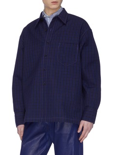 由香港设计师Karmuel Young创立的同名品牌,擅长从日常生活中的男士著装需求中汲取灵感,将其化为独特的细节并融入设计之中。这款衬衫以混羊毛面料打造出略微粗糙的质感,宽松版型带来随性气息,深蓝色主调格纹颇具复古格调,低调彰显你的时尚个性。
