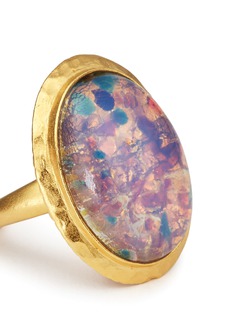 Kenneth Jay Lane这款戒指以镀10k金指圈衬托仿蛋白石,粉色椭圆形仿蛋白石散发甜美浪漫气息,与凹凸有致的金属表面组合,流露怀旧风情,让您轻松演绎复古摩登时尚。
