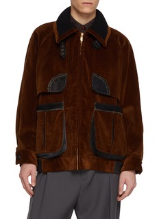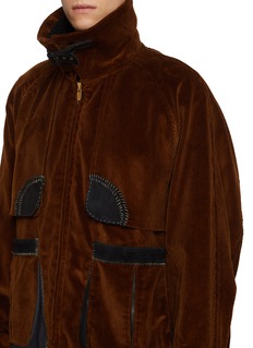 Kolor channels its signature hybrid craftsmanship in this richly textured corduroy jacket. Faux leather patches and hand-stitched detailing evoke a rustic yet contemporary sensibility. Pair it with tailored trousers or denim for a statement in tactile layering.