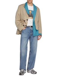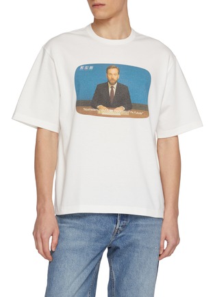 This cotton T-shirt channels Kolor’s narrative wit through a retro broadcast–style image, blending irony with quiet graphic impact. Clean lines and a relaxed cut ground the visual statement, making it an easy anchor for denim or tailored separates.