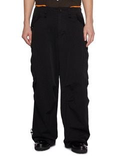 These nylon pants reinterpret functional dressing through Kolor’s refined lens, balancing volume with precision. A lightweight yet structured handle is offset by utility pocket detailing and subtle hardware, making them an elevated option for everyday styling with a technical edge.