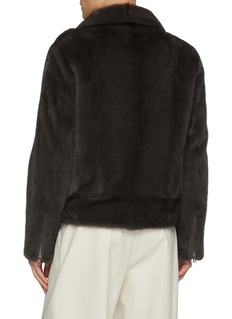Rendered in sumptuous mink, this KRUF biker jacket reimagines a classic moto silhouette with sculptural softness. Its asymmetric zip lines and structured collar introduce a sharp, contemporary attitude, while the plush texture lends quiet opulence. A statement layer that elevates winter dressing with tactile depth and modern edge.
