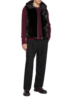Transform your winter attire with KRUF's exquisite fur vest. Combining opulent black fur with a practical, insulated hood, this piece ensures both style and warmth. The vest's sleek silver zip adds a modern touch to the luxurious design, making it a must-have for elevating any cold-weather ensemble. Perfect for those seeking both elegance and functionality in their wardrobe.
