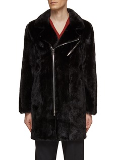 香港本地皮草品牌 KRUF 致力于打造更为年轻化和时尚的皮草单品。这款夹克凭借流畅剪裁打造经典机车版型,貂毛材质铸就奢华触感。