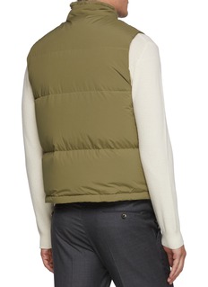 A study in subtle luxury, this down vest by KRUF contrasts a clean nylon shell with the unexpected softness of mink lining the stand collar. Its minimalist silhouette sharpens cold-weather layering, while the plush inner trim adds warmth and a quiet note of refinement. Pair with tonal knits for an elevated winter uniform.