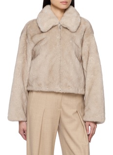 KRUF reimagines classic luxury through a softened, sculptural lens in this cropped mink fur jacket. The rounded collar frames the face with plush volume, while the clean zip front keeps the silhouette modern and understated. A refined layer that moves effortlessly from daytime polish to evening warmth.