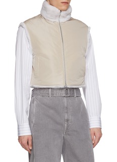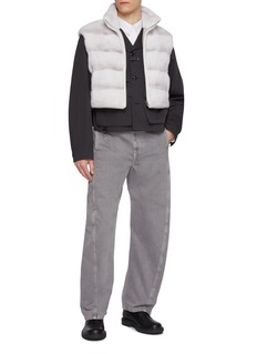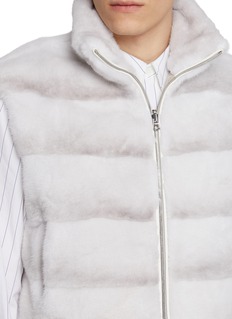 Wrap yourself in the essence of winter luxury with KRUF's plush fur vest. Crafted in a serene grey hue, this vest features a high collar and sleek silver zip fastening, blending sophisticated style with essential warmth. Ideal for layering, it's a chic addition to any refined wardrobe, offering both comfort and elegance.